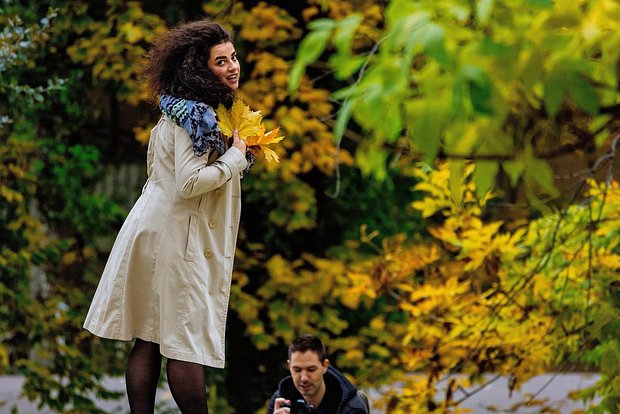 По словам Ноздриной, лучше либо фотографироваться на фоне осенних пейзажей, либо самостоятельно сорвать красивые желтые и красные листья.