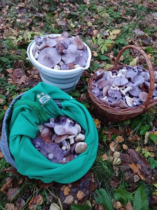 Главная звезда конца октября — рядовка фиолетовая. Эти плотные, мясистые грибы с сиреневыми шляпками в этом году буквально заполонили подмосковные опушки. Жители Можайска, Солнечногорска, Орехово-Зуева и даже новой Москвы, в районе Коммунарки, хвастаются уловом в соцсетях.