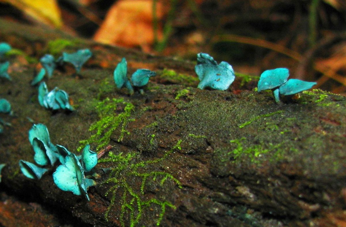 В лесах Тульской области встречается хлороцибория сине-зеленоватая – редкий гриб с характерным голубовато-зелёным оттенком.