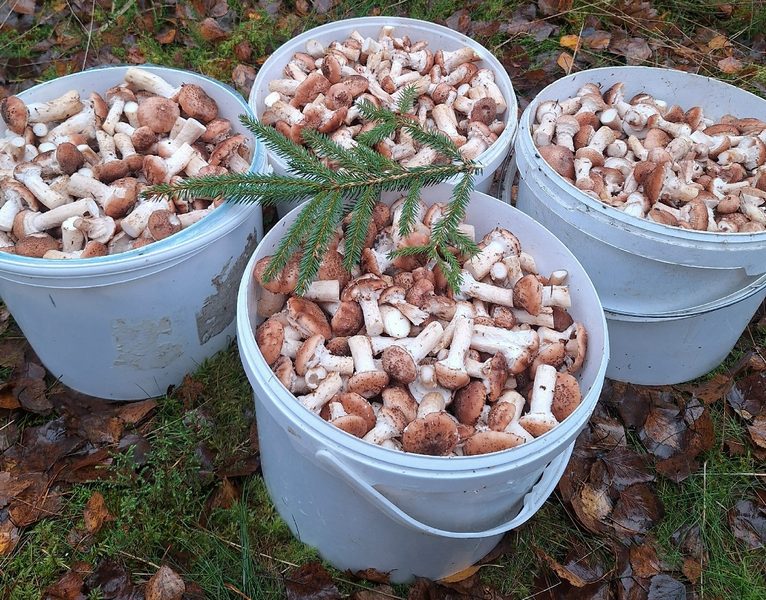 Десятки ёмкостей переполнены лисичками, белыми, польскими, опятами и другими объектами природы. Участники группы «Грибы и грибники Калининградской области» традиционно скрывают координаты таких походов. Однако, судя по другим сообщениям оттуда, в целые колонни опят высыпали в лесах Неманского района. Польские и белые заново пошли у посёлка Февральское Полесского района.