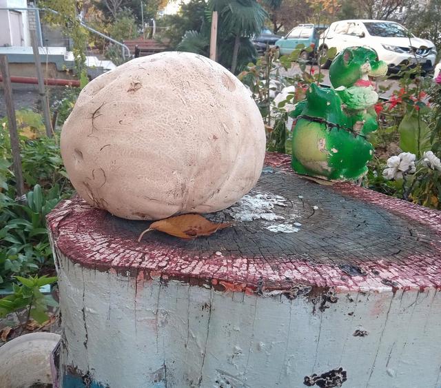 На днях в одном из дворов Невинномысска был обнаружен неопознанный объект. Появление на большом пне грязно-белой сферы размером с детский футбольный мяч вызвало активные пересуды у жителей окрестных домов. Кто-то утверждал, что это и есть мяч, просто немного сдувшийся. Кто-то считал, что на пень положили необычную детскую игрушку.
