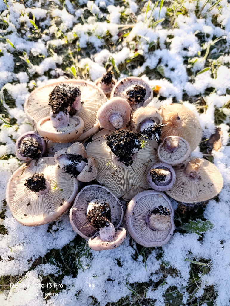 «Краснинский район. Снег с дождем, в ночь мороз -4 не смогли остановить неугомонного грибника в моем лице. Утро встретило ярким солнцем. Собралась и поехала собирать замороженную рядовку лиловоногую и рядовку сорную. После воды они становятся как «новенькие» без признаков обморожения, в маринаде ничем не отличаются, плохо, что под снегом не всё видно», — рассказала женщина и проиллюстрировала свой грибной улов фотографиями.