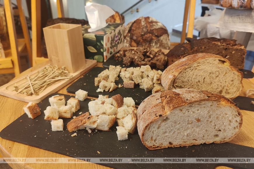 На ярмарке можно приобрести ремесленный хлеб. Его производят в поселке Кунья. «Это хлеб полностью ручной работы, начиная от засыпания муки и до вытягивания из печи на лопате. Печь — ремесленная, на камнях. Так раньше пекли наши бабушки. Хлеб — бездрожжевой, на закваске собственной разработки», — рассказала представитель завода «Псковский каравай» Виктория Гаврилова.