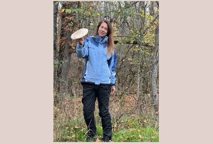 Ирина Еремич держит в руках съедобный гриб-зонтик. Лес в Верхнесадовом. Фото: Из личного архива И.Еремич