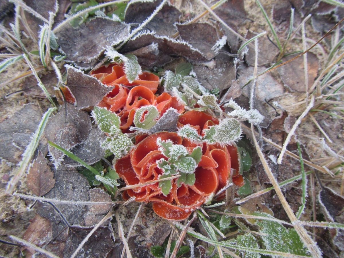 В частности, там находили дрожалки, которые растут на отмерших ветвях и пнях лиственных деревьях, и алеврию (пецицу) оранжевую. Эти грибы любят сырость и переносят ночные заморозки.