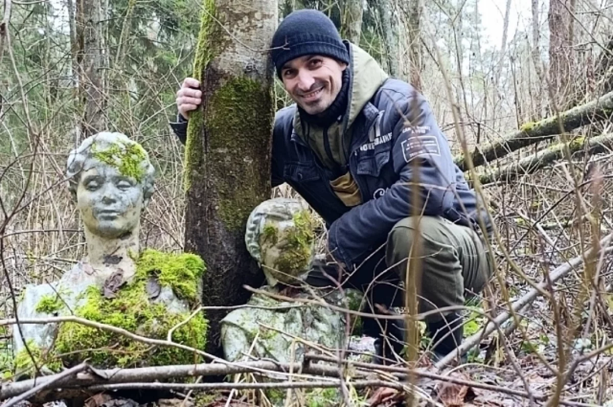 В лесу лежали скульптуры советских пионеров. Несмотря на то, что на дворе декабрь, рядом росли лисички.
