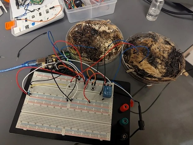 Учёные выращивали мицелий шиитаке в чашках Петри на субстрате из семян полбы, зародышей пшеницы и сена при температуре 20-22° C и влажности 70%. Затем они сушили чашки под прямыми солнечными лучами около семи дней, пока образец не превратился в твердый диск. Перед тестированием они восстановили проводимость, слегка опрыскав деионизированной водой с расстояния около 10 см, затем подключили электроды и измерили вольт-амперные характеристики с помощью осциллографа.