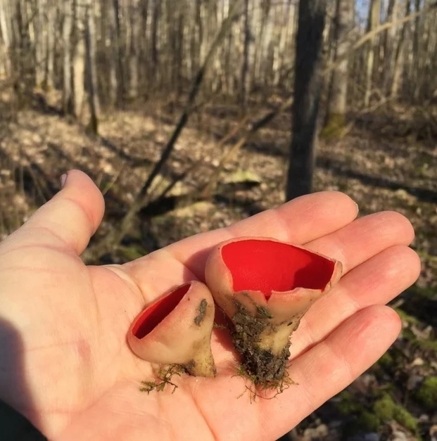 В Олонецком районе обнаружили грибы — ярко-красные чашечки под названиями «алая эльфова чаша» или «бабушкино ухо». Официальное название — саркосцифа австрийская.