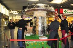 В полдень минувшей пятницы, 24 октября, в вильнюсском торговом центре «Акрополис» столичные кондитеры начали при помощи 5 тысяч выпеченных маленьких кексов создавать двухметровый гриб-боровик. Таким сладким способом инициаторы проекта решили ознаменовать прощание с грибным сезоном.