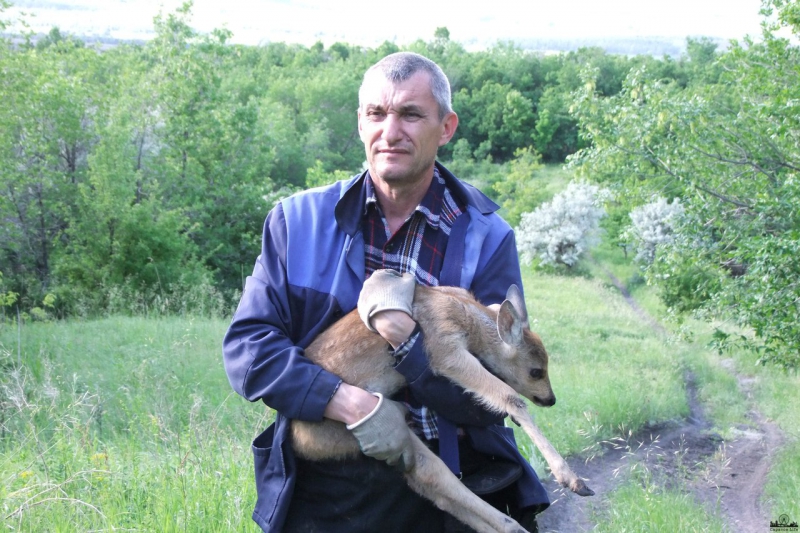 «Тут я не удержался, попросил внука постоять на тропинке с велосипедами, а сам двинулся в глубокую траву. Сделав несколько шагов, я четко понял, что эти звуки раздаются приблизительно с того места, где и находится этот колодец. Меня терзали сомнения, может, щенков кто выкинул, может, лисенок угодил в западню, тогда было бы проблематичнее его доставать, они кусаются. Подошел к колодцу поближе и увидел вот этого косуленка. Он сразу стал пробовать выскочить из этой западни. Но у него копытца, и они не давали зацепиться за стенки. Хоть колодец и неглубокий, около метра, может, чуть глубже, но выбраться он не мог уже долго. Косуленок ведь не кошка.