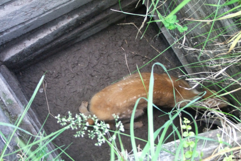 Мужчина слез в колодец, взял на руки детеныша косули и вытащил его из плена, после чего запечатлелся с ним на камеру и отпустил зверя восвояси.