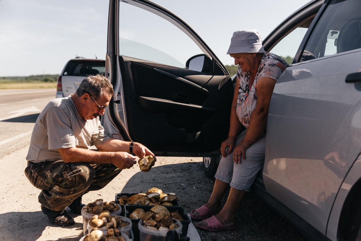 За полчаса общения к сельским продавцам заглянул всего один человек, и то, как оказалось, не потенциальный покупатель, а грибник. Мужчина попросил помочь местных жителей опознать неизвестный экземпляр — не галлюциногенная поганка ли попалась?