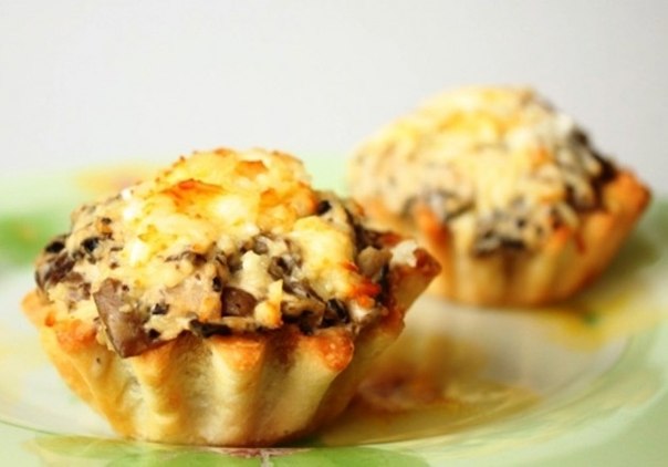 Ингредиенты: 500 г лисичек, 150 г готового песочного теста (или готовые тарталетки), лук-шалот, сливочное масло, петрушка, 2 столовых ложки оливкового масла и винного уксуса, 2 столовых ложки майонеза, соль, специи по вкусу