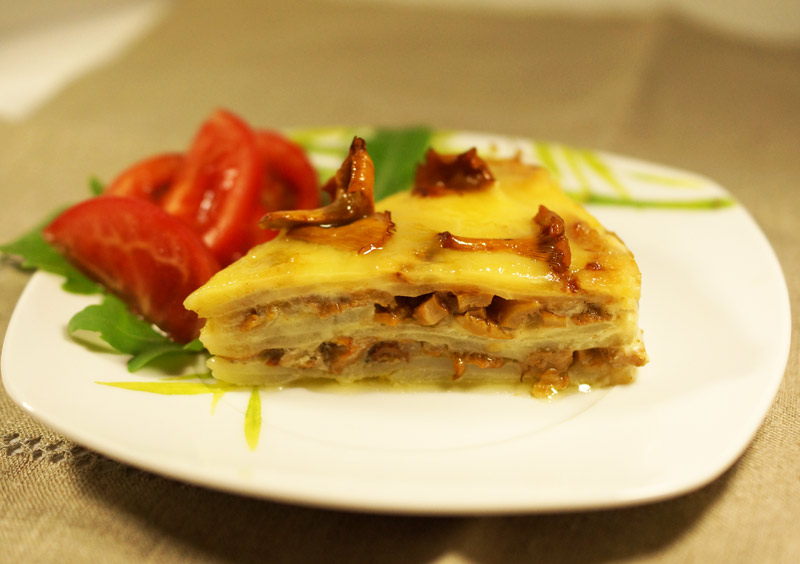 Ингредиенты: 2 кг лисичек, 400 г жирной свинины, зубчик чеснока, 2 яйца, соль, перец, панировочные сухари.