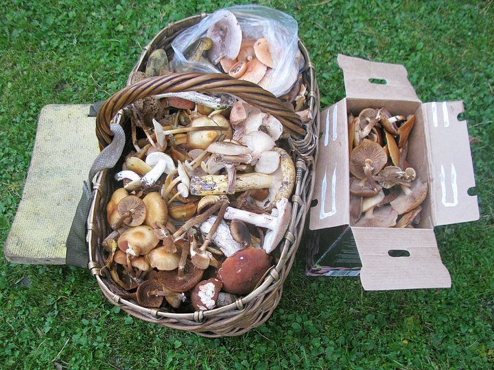 Всего же различных грибов набрал полную ведёрную корзину. Пришлось задействовать и картонную коробку, которую нёс в рюкзачке.