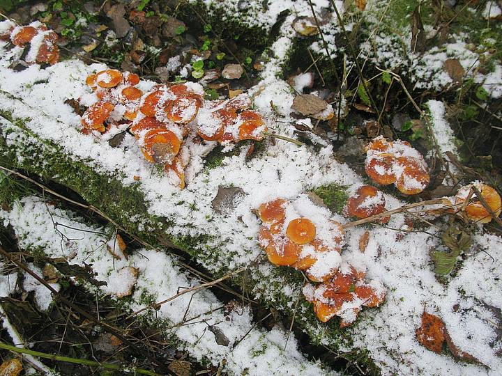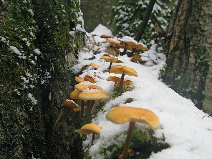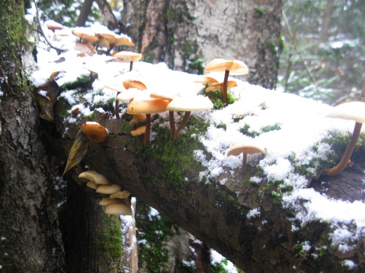 Большая часть и без того немногочисленных грибов от холодов пришла в негодность. Уцелели только стойкие к несильным холодам: зимние опята, поздние вешенки и осенние лопастники.