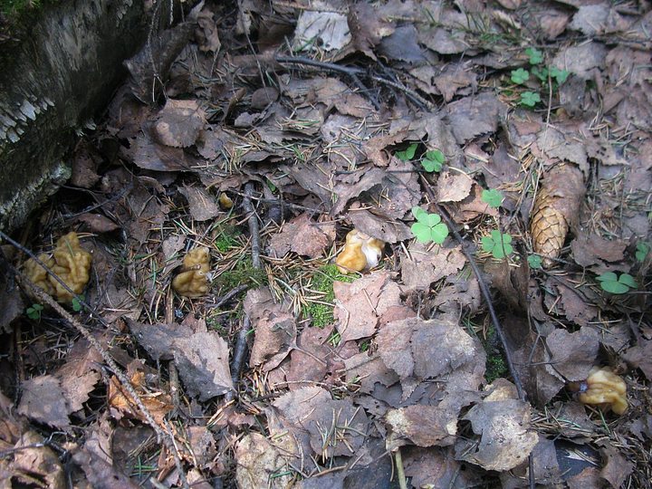 Больше находилось мелких экземпляров строчков и даже совсем крошечных ещё не пригодных для сбора. Встречались эти грибы не только по одиночке, но и по несколько штук в одном месте.