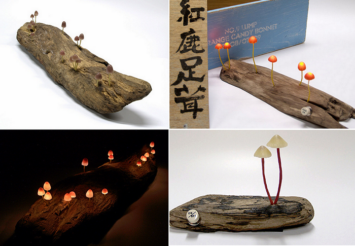 В серии арт-светильников Mushroom Lights дизайнер объединил в одно целое естественные материалы с искусственными. Встроив в обломки древесины прозрачные силиконовые фигурки грибов, подсвеченные изнутри светодиодами, он добился реалистичного внешнего вида этой инсталляции. Потому последующее световое шоу, которое начнется, как только погаснет свет, существенно удивит непосвященных. Но удивит приятно.