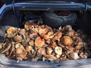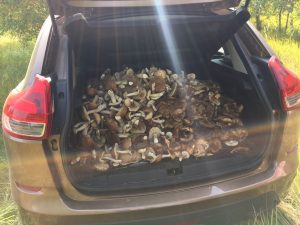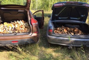 В реальность этих фото невозможно поверить, но грибы собирают ведрами, коробками: подберезовики, опята, подосиновики, грузди, маслята. Они едва умещаются в багажники автомобилей.