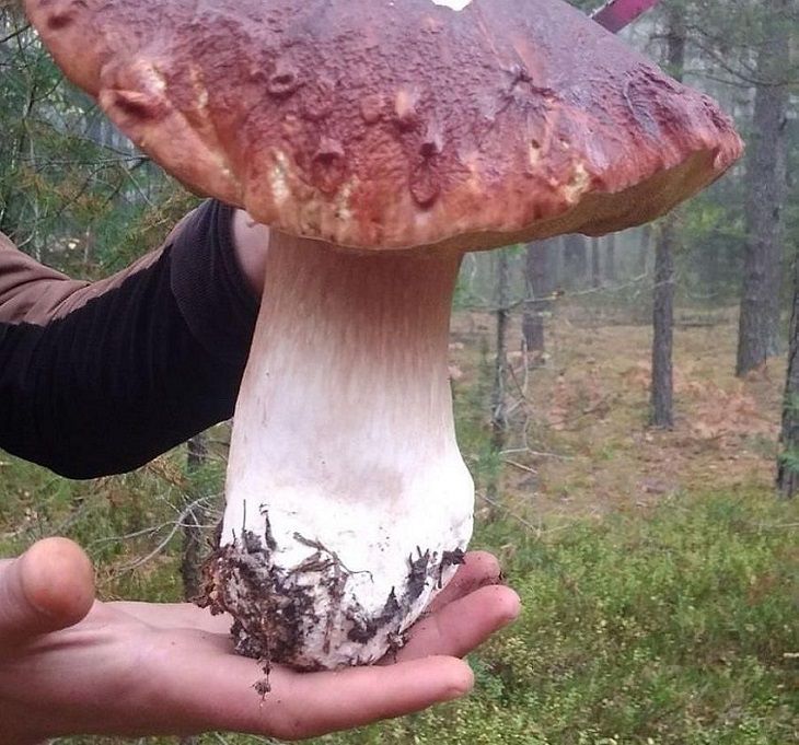 Вес гриба составляет килограмм и 100 граммов. Посмотрите на этого великана, – подписали фото довольные грибники.