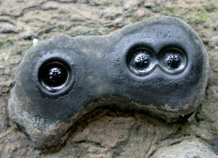 Стромы Camillea leprieurii с остатками коры, под которой грибы начинали формироваться. Внизу справа видна молодая строма, которая только начала расти из-под коры. Фото © Geoff Gallice с сайта flickr.com