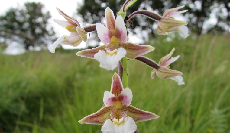 А это – его гибрид. Достаточно редко этот гибрид встречается в зоне контакта, где оба вида – настоящий и крупноцветковый – растут вместе, рядом, близко. Тогда опылители переносят пыльцу с одного вида на другой, и возникает такая форма. Ну а Любка двулистная – заслуживает интереса тем, что ошеломительно пахнет по ночам, чем привлекает сумеречных насекомых-опылителей.