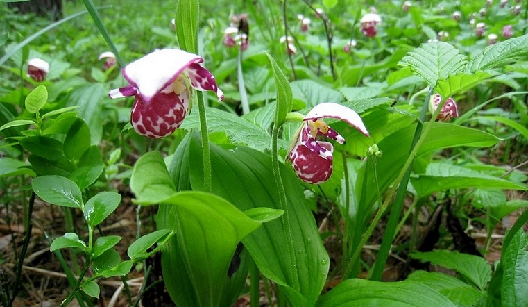 Такое скопление орхидных на небольшой территории трудно представить. Но это факт. Вот одна из самых эффектных орхидей – Венерин башмачок.