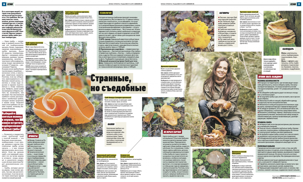 В наших лесах грибов более тысячи видов, съедобных — несколько сотен, а некоторые смертельно ядовиты. Поэтому, если вы собираетесь присоединиться к любителям «тихой охоты», отнестись к этому надо серьезно и заранее подготовиться к этому важному делу. Выбрать, какие грибы вы намерены собирать, изучить их, посмотреть, как выглядят. Ну а мы накануне грибного сезона рассказываем о необычных грибах, которые можно встретить в наших лесах. Поможет нам в этом грибник с 25-летним стажем, почвовед Вероника Воинова. —
