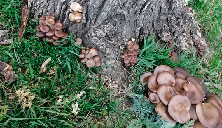 «Великаны» выросли в Каслях на подпиленном дереве. Местная жительница рассказала, что нашла «урожай» в центре города.