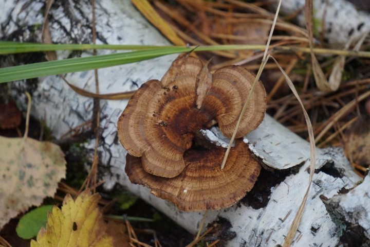 «Розы», выросшие на березе, сфотографировали в Перовском лесничестве. На самом деле, это грибы — дедалеопсис трехцветный. У них необычная расцветка из трех насыщенных тонов — коричневатых, красноватых, оранжеватых, а иногда и винных.