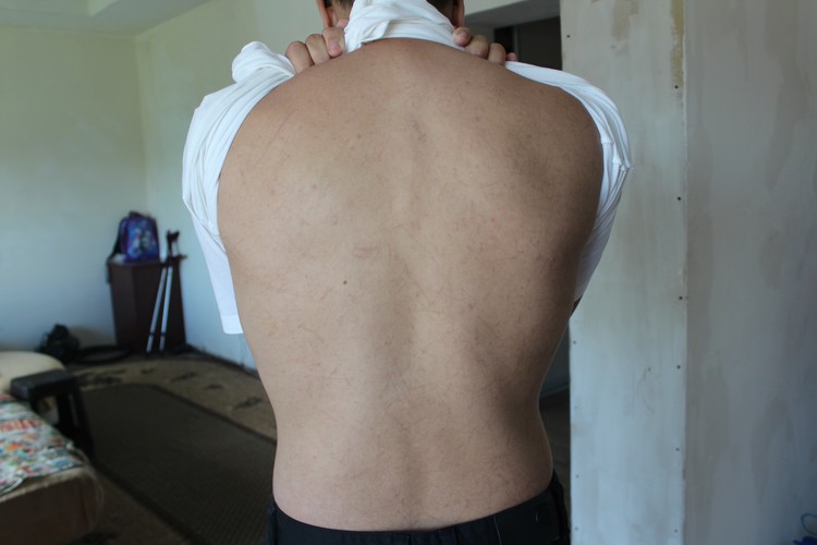 Следы от колючих шипов остались даже на спине мальчика, хотя тот был в футболке