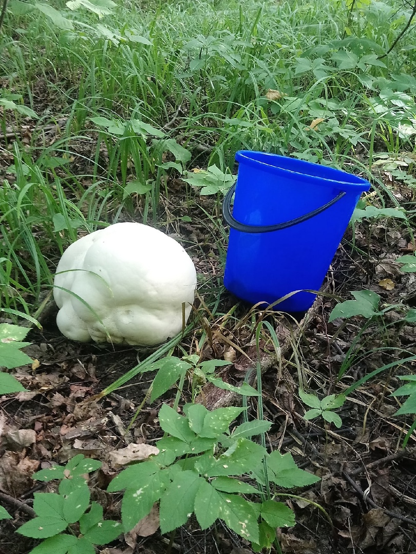 На фотографии зафиксирован дождевик гигантский. В нашем регионе он встречается с начала августа до октября. Этот вид дождевика может достигать до 50 сантиметров в диаметре. Вес такого гриба может доходить до 7 килограммов.