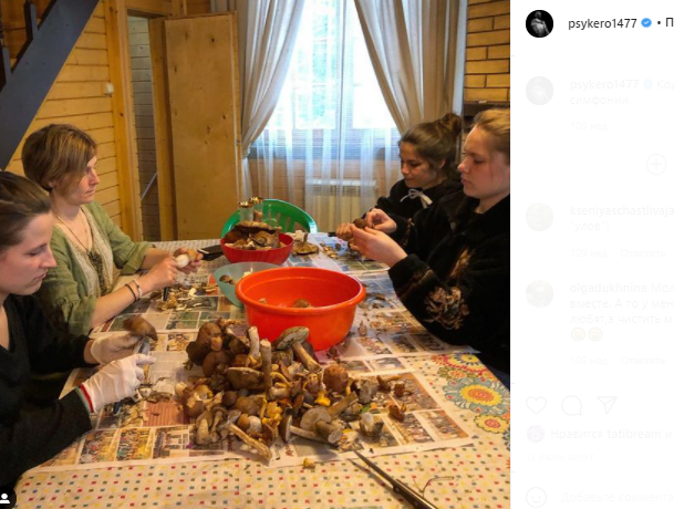 Семья Ивана Охлобыстина разбирает грибной урожай
