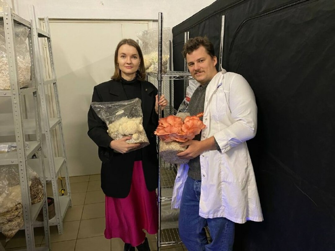 Илья Литвяк, сооснователь бистро Futura, вместе с Аленой Проскура, аспиранткой и биотехнологом ИТМО, создали экспериментальную грибную ферму CO.MU. Вешенки и еринги здесь выращивают на отходах производства, а в планах – холодильники-лаборатории в ресторанах Петербурга, создание веганской кожи, а также мебели и строительных материалов из грибов.
