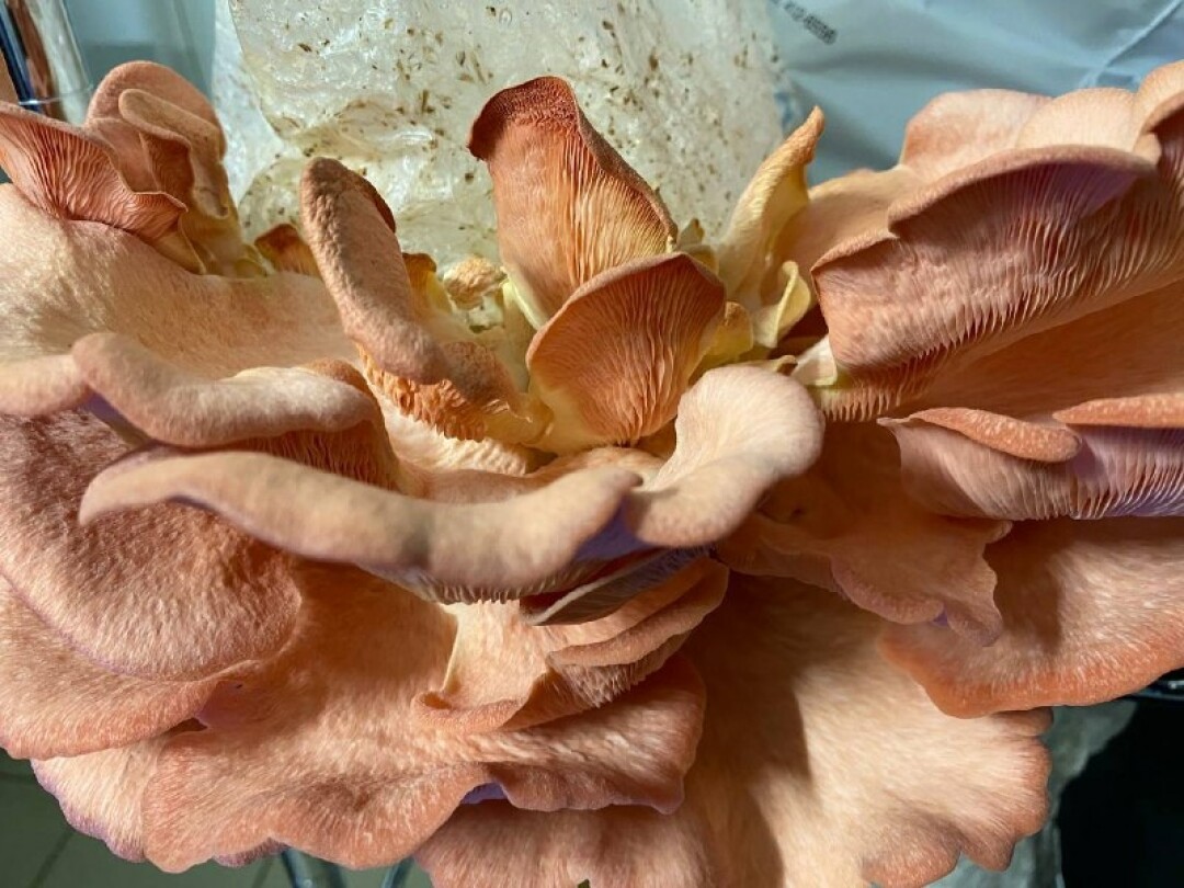 На опилочном субстрате здесь выращиваются еринги, ежовики и обыкновенные, розовые или лимонные вешенки. В бетономешалке смешиваются опилки березы или дуба с гипсом и отрубями, иногда используется кофейный жмых или другие отходы, в которых содержится целлюлоза. Из этого получается «пища» для грибов – то, на чем они растут в специальных пакетах.