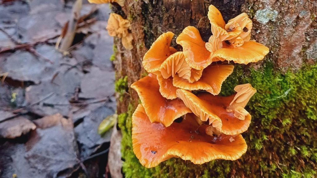 Он рассказал, что зимние опята обладают яркой оранжевой окраской и слизистой поверхностью, позволяющей им выживать при низких температурах. Часто они растут до самого Нового года, если погода позволяет.