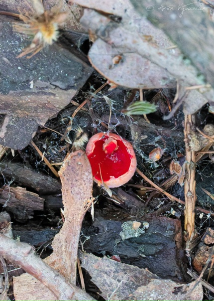 А в Лужском районе показались первые грибы. На камеру попала Саркосцифа австрийская.