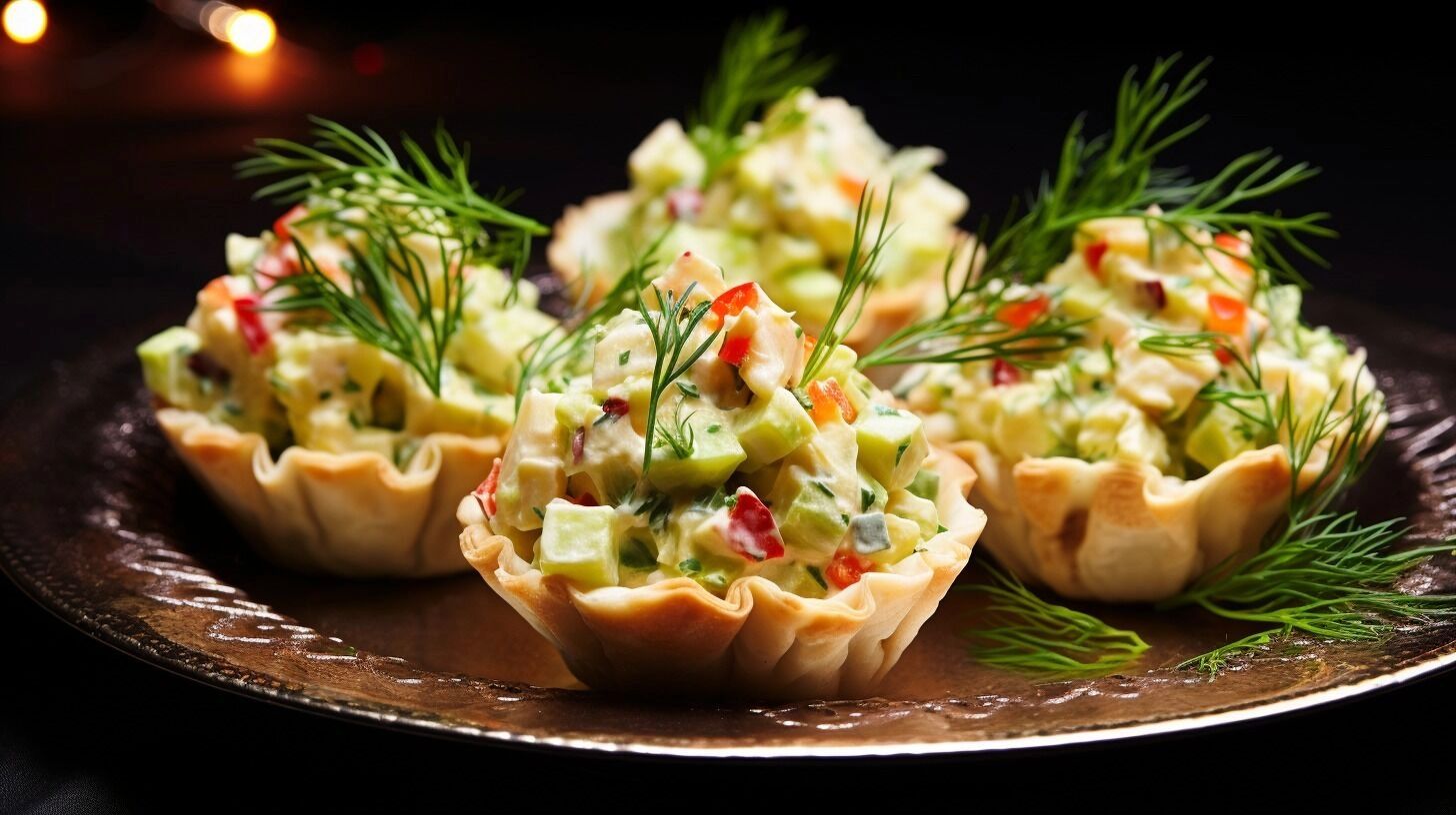 Поместите салат в холодильник на период от полутора до двух часов. Перед тем, как подавать на стол, украсьте салат измельченной зеленью и ягодами клюквы.